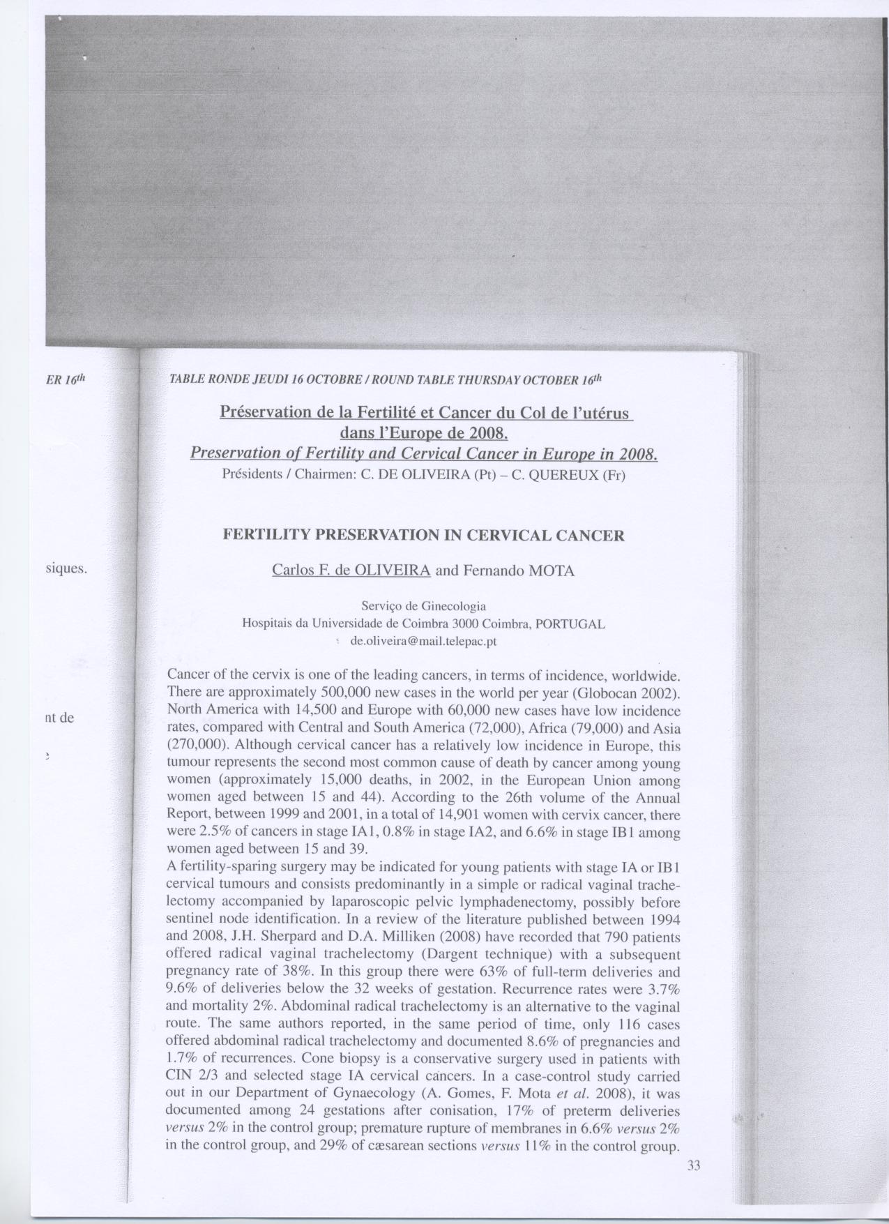In: Neuvièmes Journées Européennes de la Société Française de Gynécologie; 2008 Oct 15-18. Paris: SFG; 2008